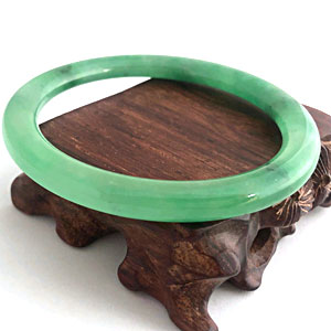 薄い緑系ミャンマー翡翠の奇麗なカラーです。内周18.3-18.5センチ